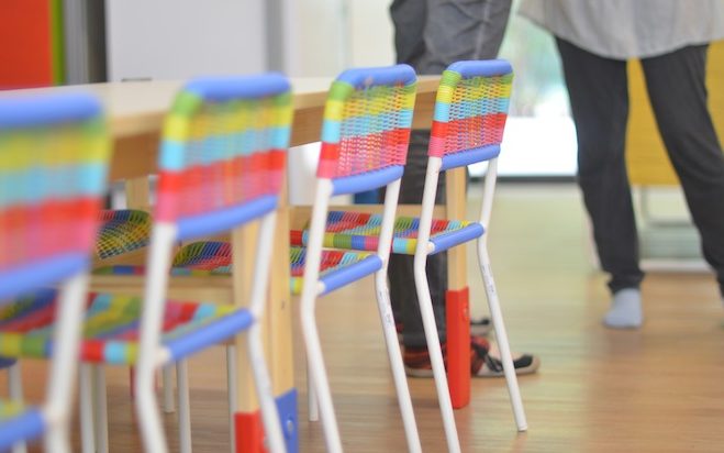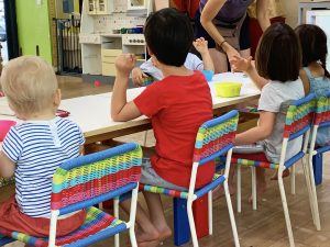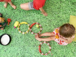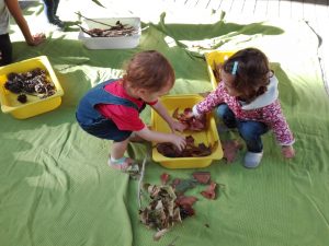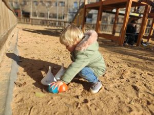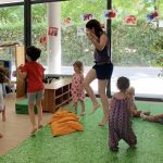 Els dos espais juntament amb la llum del sol que brilla per tot arreu, el pati verd que ens alegra la vista, el jardí ple de fulles que ens deixa que li fem pessigolles, els colors de les fulles dels arbres i les flors que trobem, els veïns, cotxes i camions que veiem passar per les vidrieres, tots aquests espais juntament amb el parc que tenim al costat amb gronxadors, estructures per enfilar-s’hi, sorra i font, són on creixen els peques i les seves famílies, que juntament amb l’equip docent i jo mateixa formem la nostra escoleta.